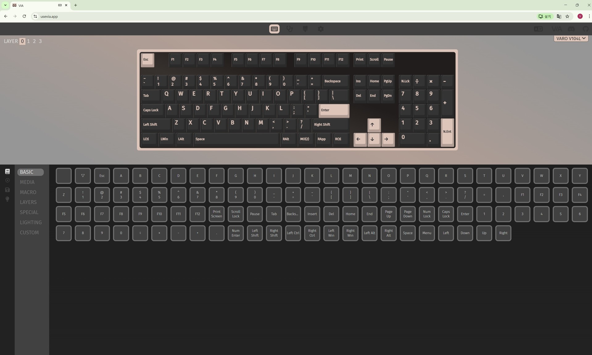 **위 V104L 넥서스 - VIA.JSON 파일 다운로드 후 웹 VIA_DESIGN 카테고리 [Load] 클릭하여 파일 업로드 페어링 해주시면 됩니다. (유선 연결 필수사항)