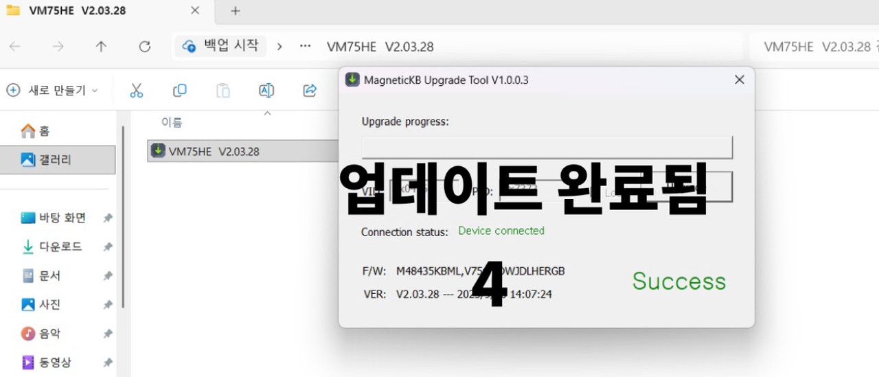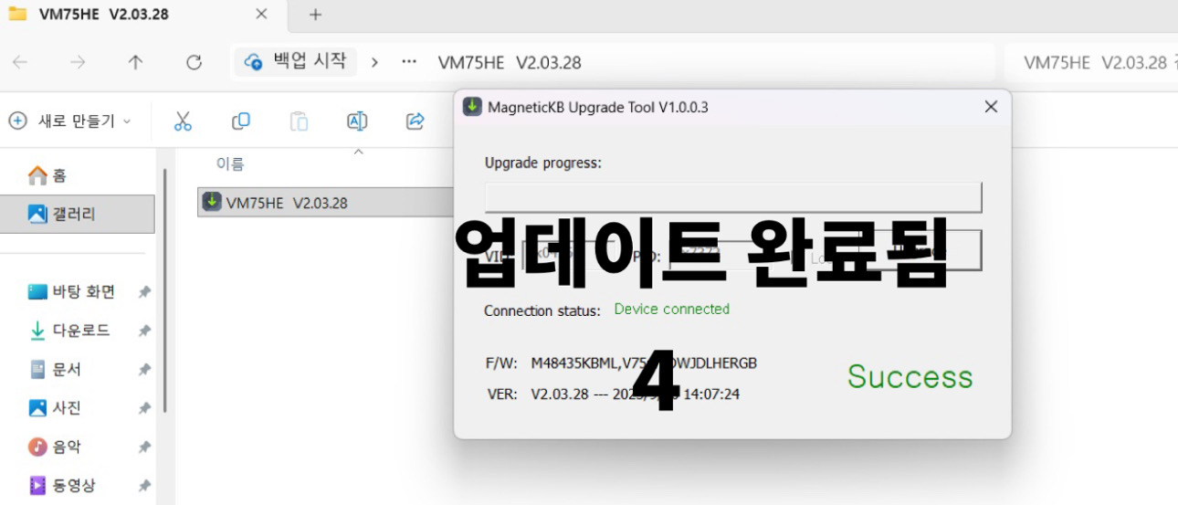 4. 업데이트 완료시 Success 확인되면 해당창을 닫아주세요.